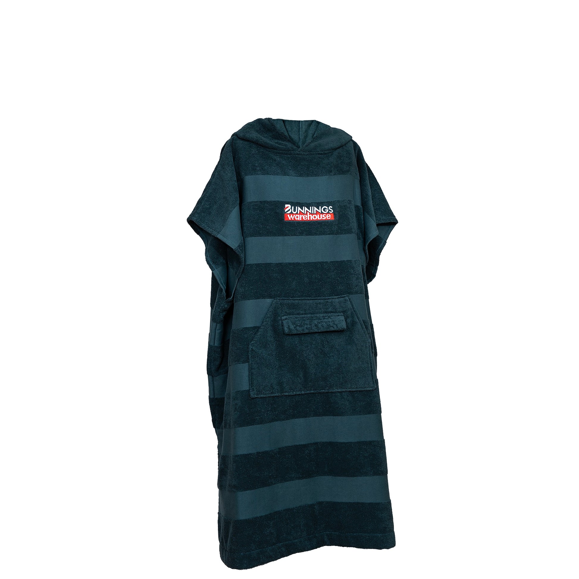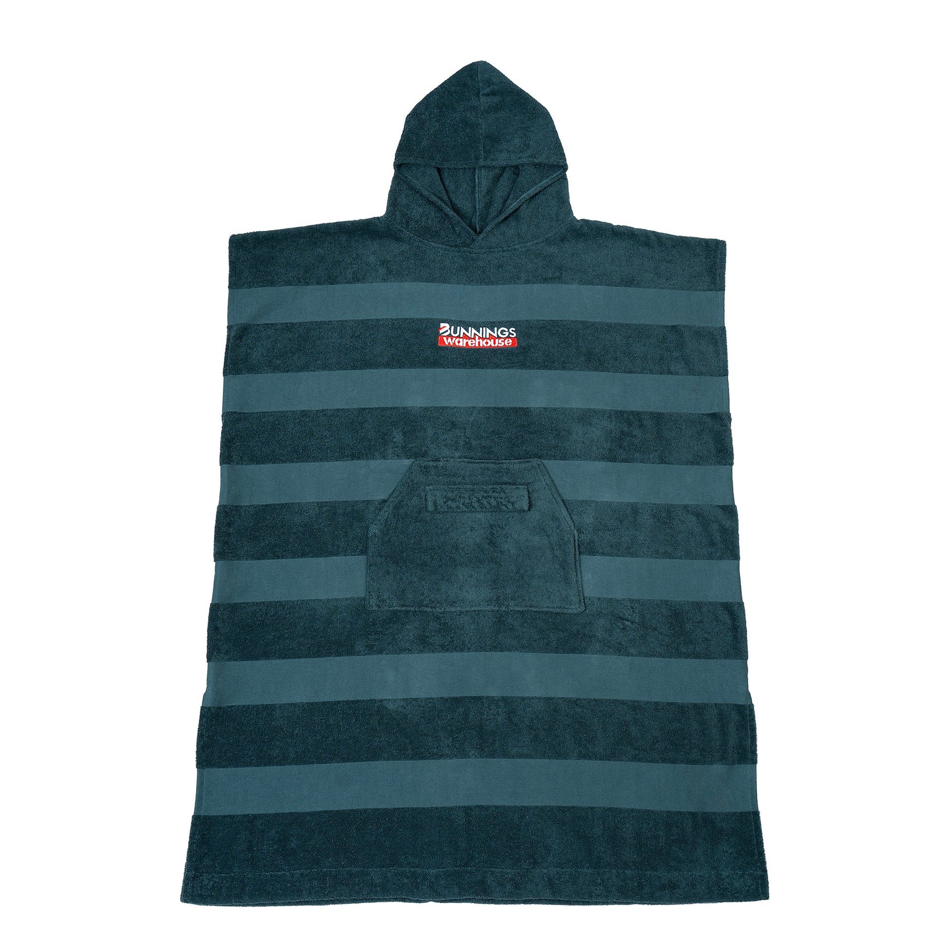 Your new go-to for drying off, cooling down or covering up. This oversized hooded towel is made from premium 100% cotton terry towelling, soft, absorbent and built for comfort. Designed in signature Bunnings green with a textured stripe, it features a front pouch pocket plus a waterproof zip pocket to keep your phone and keys safe. Ideal for the beach, pool, gym or your favourite swimming spot, it’s easy, practical and unmistakably Bunnings.